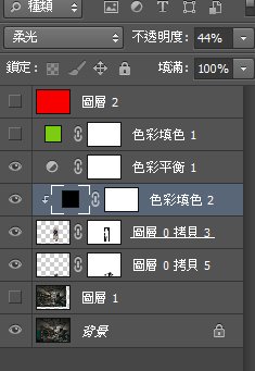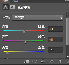 7.點選色彩平衡圖層,開始做調色,主角色彩盡量與背景色相近。